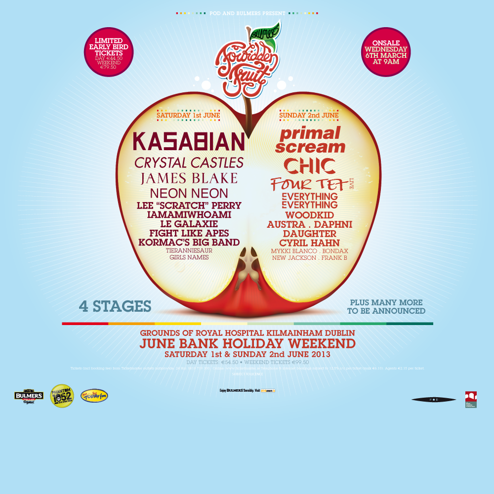Full price tickets are: €54.50 (Day) and €99.50 (Weekend).