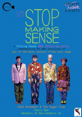 Stop Making Sense – 80’s dress up party at the Sugar Club on Tuesday the 26th.