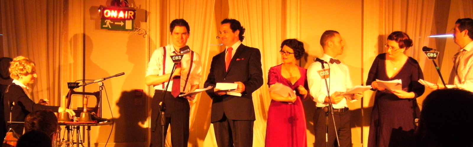 Delightful stage design and costumes complimented the show. There was much to enjoy here and the audience was mesmerised watching the intricacies of the radio play of A Christmas Carol unfold. The radio play itself was book-ended by cleverly written interaction between Welles, his soon-to-be stellar cast and long-suffering female assistant, Benny. It is here that the production falters slightly. I wanted to see Welles, played by Paul Nugent, be ‘Orson Welles TM’ in all his genius and hammy glory, this is never quite realised, although Nugent’s potential to do so is clearly present. The addition of a cheesy advert for a local vintage clothes store, sung in a 1930’s stylee, was just plain unnecessary as there was already an advert in the company’s programme. The audience thought it hilarious, I didn’t.