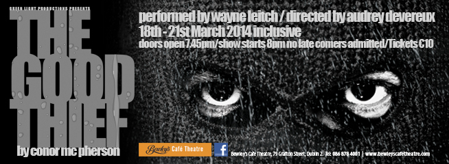 Bewleys Cafe Theatre has Fishes at lunchtime until March 10th to April 5th. The Good Thief by Conor McPherson from Mar 18 – 21, 2014
