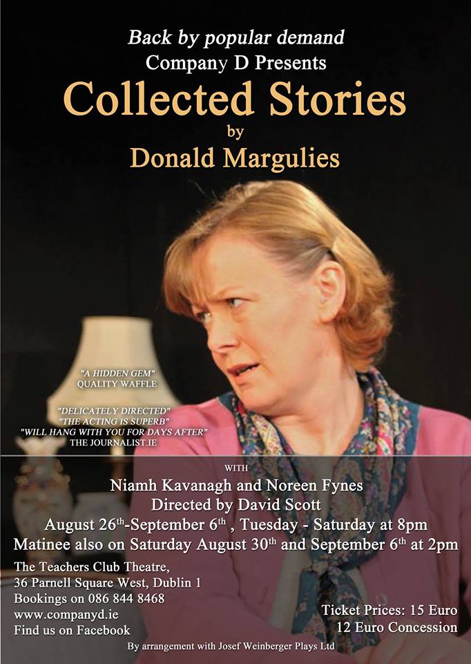 Lisa Morrison is an aspiring writer at the start of her career, a college student with real talent. Ruth Steiner is a well established writer who teaches in Lisa’s college. We meet Lisa on her first visit to Ruth’s apartment for a tutorial. Lisa is slightly star struck by Ruth. She knows all her work intimately and is able to quote character names of Ruth’s most obscure stories, which the writer herself can barely remember. When Lisa finds out that Ruth is looking for an assistant, she jumps at the chance. Ruth explains that it will not be the most glamorous job, but Lisa would do anything to be around one of her favourite writers. And so begins the unusual friendship between the two women. Ruth mentors Lisa, seeing the spark of her talent and helping it grow. The dynamic between the two women slowly alters over the course of the play, and a struggle begins between one artist on the way up and the other on the way down. When Lisa chooses to use part of Ruth’s private life for her first novel, it threatens to break their friendship apart.