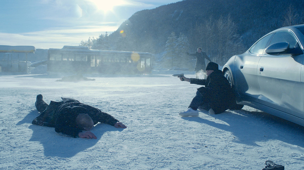 White is everywhere. The opening scene of the plough spewing out plumes of white powder as it cuts its way through the snow, followed by the razor blade making a path through the soft white shaving foam on the face of Nils Dickman (Stellan Skarsgard) and then his wife ironing a white detachable collar for his shirt as he is going to be acclaimed as “citizen of the year” at a public ceremony. But white powder is not only snow or shaving foam it is also the narcotic cocaine and the control of the supply of cocaine in this remote Norwegian town is the commerce which drives the plot. Unfortunately for Dickman and his wife their only son works in the airport where the drugs arrive. His work mate steals a bundle of cocaine belonging to an indigenous Norwegian drugs cartel who have divided the surrounding area into separate spheres of control with a Romanian drugs gang. The Norwegian gang kidnap Dickman’s son along with his friend and kill him by lethal injection, which makes it look as if he died from an overdose. The authorities are not interested in the death of his son as they believe he was just another junkie. Dickman cannot accept this verdict though. He is on the verge of suicide when he strikes lucky in his own investigation, when he extracts a clue as to the identity of his son’s murderers. This enables him to follow a path which leads him ever closer to the Count (Pal Sverre Hagen), the leader of the Norwegian drug gang. He in turn has “offended” Papa (Bruno Ganz) the leader of the Romanian drug gang. There is a full scale war between the Count and Papa in which Dickman inevitably becomes involved as he edges ever closer to the Count the true murderer of his son.