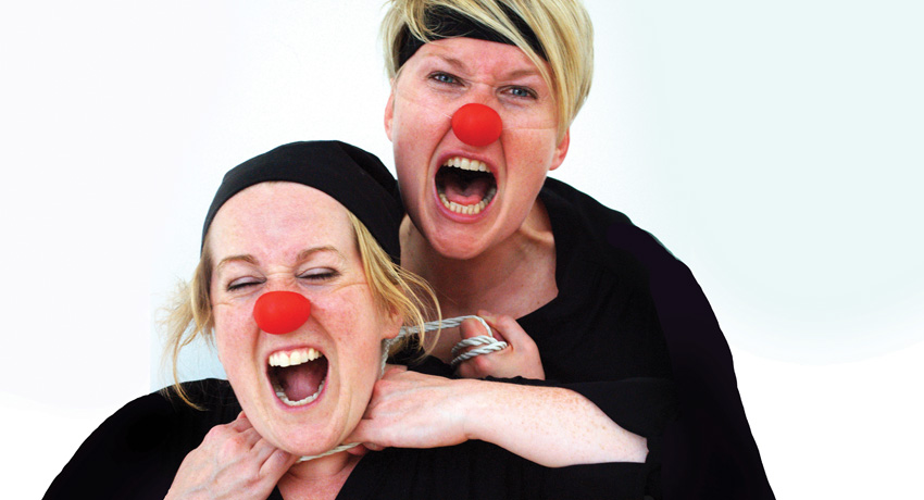 Performed entirely in red nose Coburn utlises the clowning skills of Barrett and Conroy to great effect. From the very opening they are expressive and hilarious although the humour and performance gets darker as the story develops. Both actresses switch brilliantly from the silly to the serious and during the more intense scenes you forget that they are in red nose and are completely drawn into the moment.