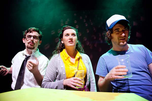 War Of Attrition returns to Irish stages with a short run at the Project Arts Centre. It was first performed as part of Dublin Fringe Festival 2013 and follows on from Fused and Dublin Oldschool with revivals of popular Fringe shows. This play is the story of Alan, a mild mannered office worker by day and the powerful blogger Generalissimo Malaise by night. Alan claims to target the ‘everyday arseholes’ making videos and putting them online to expose people for what they really are to his thousands of followers. He targets Daisy, a chugger (charity mugger) working on the Dame Street after an altercation during his lunch hour. He makes a video that destroys her life, making her lose her job and most of her friends. She plots revenge but still doesn’t know the identity of Generalissimo Malaise, that’s where Chris comes in, a homeless guy (or between homes at least) who just happens to know the General’s secret identity!