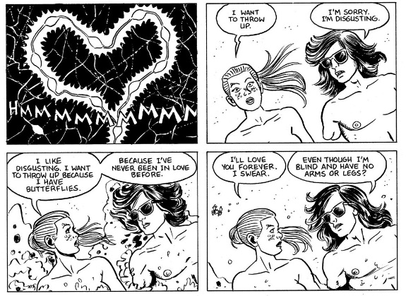 This series seems to be finding its feet and is a lot more episodic than the earlier incarnation of Stray Bullets. The story has settled on two main characters, one familiar in the form of Virginia and one quite new with her boyfriend Eli. Issue 5 “Call me Gilgamesh” is the first sight of Amy Racecar. She encounters a young man that just happens to be blind as well as not having arms or legs, who has more than a striking resemblance to Eli. He is kept scrubbing floors for his cruel mother with a sponge between his teeth! This issue contains all the typical madness of Amy, and an insight into Virginia’s mind as it is the first time that Amy falls in love!