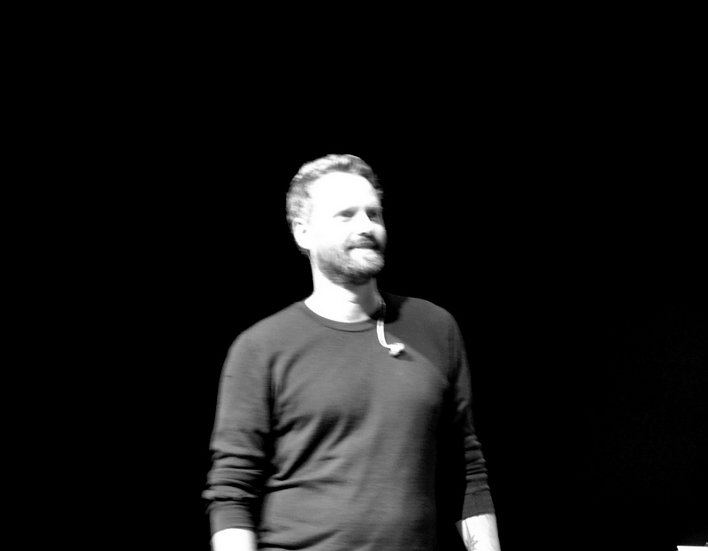 Dustin O’Halloran and Adam Wiltzie are the two men behind the composition of A Winged Victory for the Sullen’s music, and here they appeared on either side of the stage, O’Halloran leading on ominous keyboards as Wiltzie added guitar, drones and static. Between them were a Belgian string triad, taking centre stage for a large helping of the Atomos score. This meant a huge expanse of sound, each instrument interwoven to create glacial swells of lush sound, right from Atomos I onwards. That’s not to say the audience was lulled into tranquility, far from it. O’Halloran’s pounding of the keyboards on VI threatened at one point to overwhelm the entire sound system, yet somehow the sound engineer rose to the task of delivering the incredible sound created on the stage.