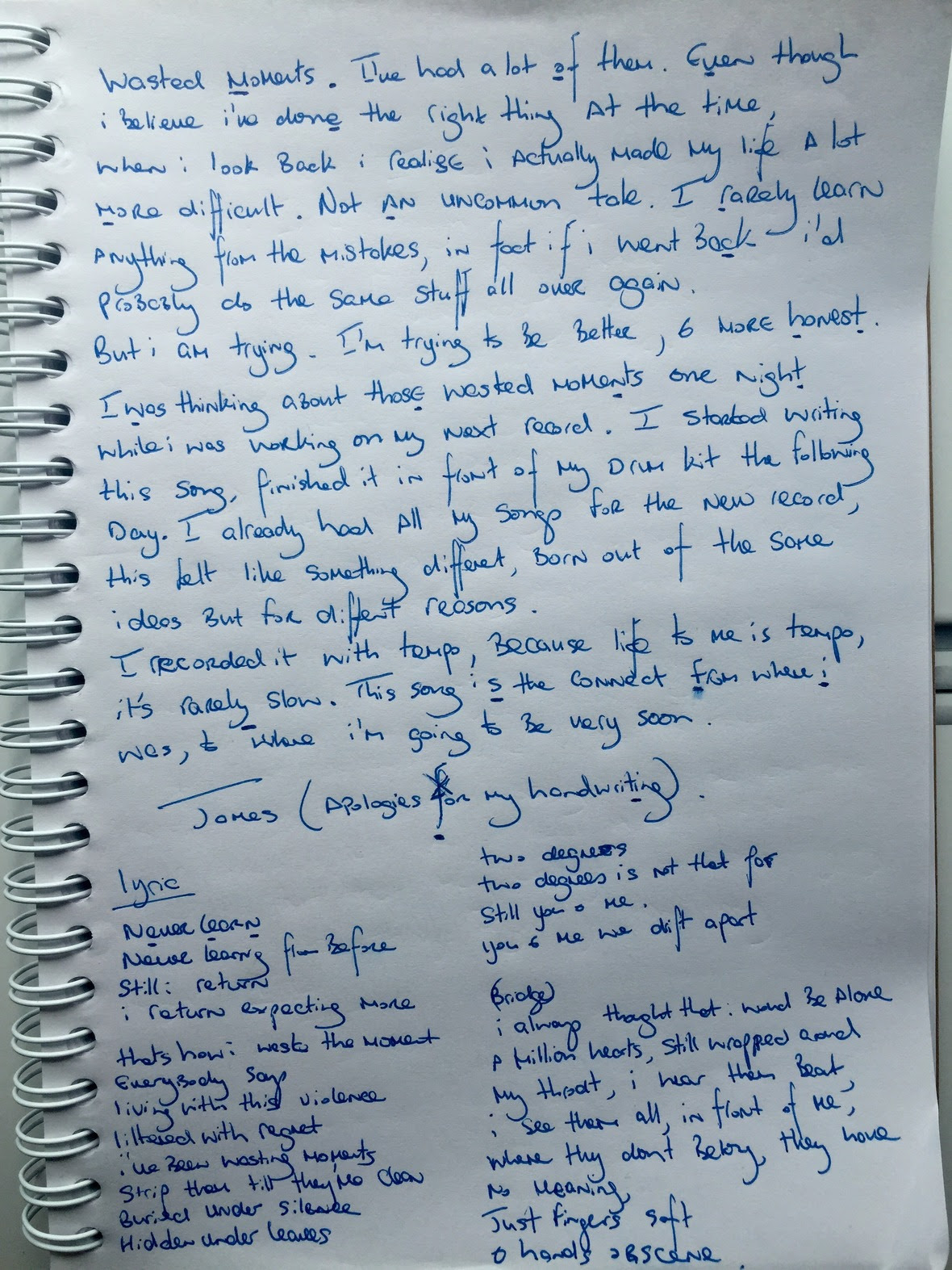 The bold James V McM has dropped a tune onto Soundcloud which is being seen as a taster sized treat of what is in store from his forthcoming album. It has come complete with a handwritten letter and an apology for his hand writing. It is a bit scruffy.