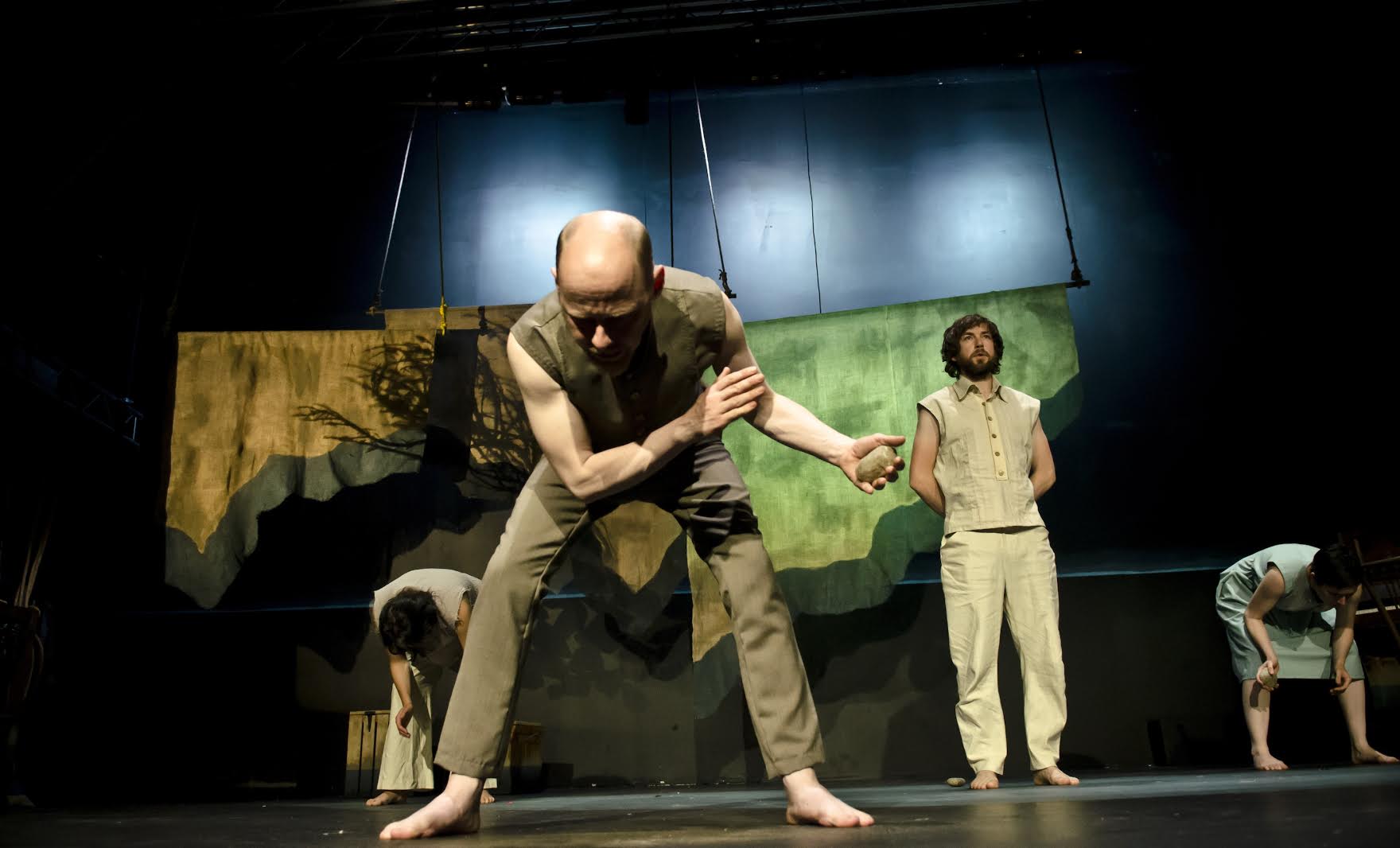 Five actors play multiple parts throughout the performance, while one (co-director Máiréad Ní Chróinín) stays cloaked in semi-darkness manning the special effects. They flit through their roles with ease, coming to life as both men and women, peasants and gentry without missing a beat.