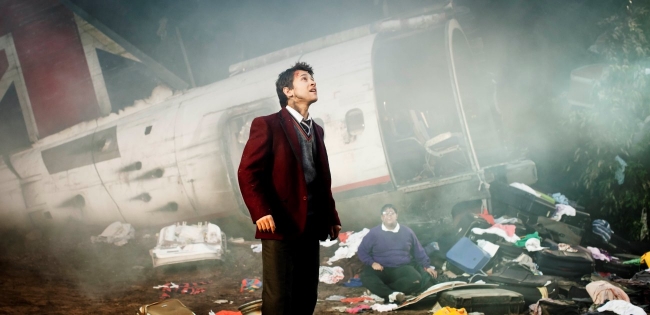 Bringing this story to the stage was always going to be a challenge for the theatre makers, as the set required for this story is quite dynamic. The site of the plane crash is very impressive, as you would expect from London’s Reagent Park theatre. The rear of the fuselage of the plane seems an impossible sight on the stage, with the shell of the craft stranded on a mound of suit cases and other debris.