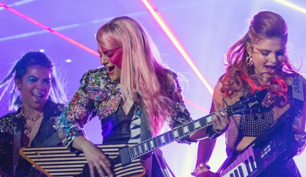 Fans of the original cartoon are best advised to steer clear. The characters may have the same names and echoes of the 80s post punk styling; but little remains of the cartoon’s feisty atmosphere. Rather than being the label boss herself, Jerrica is as powerless in her carefully manipulated transformation as many of today’s manufactured popstars; and the only remnant of the original sci-fi elements is robot S1N3RGY, created by her long-departed father, which takes them on a treasure hunt around LA, in order to teach them valuable life lessons. Add to this a focus on internet celebrity (including a number of YouTube videos of other performers, and low-resolution messages from fans to Jem), and a highly predictable romantic subplot with the two dimensional Rio (Ryan Guzman); and the film becomes over complicated, with a whiff of trying to please everyone but satisfying none.