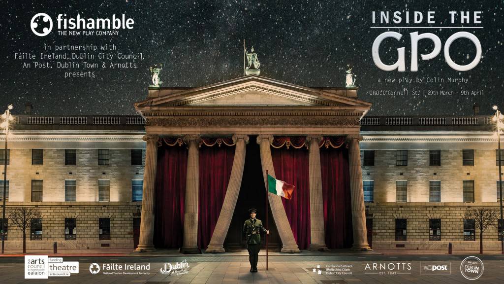 Details have been announced of Fishamble: The New Play Company’s next exciting production, Inside the GPO by Colin Murphy, the must-see cultural event at the heart of the 1916 commemorations. This unprecedented documentary drama, directed by Jim Culleton, is a once-in-a-century opportunity to experience the Easter Rising, in the main Post Office hall of the GPO itself.