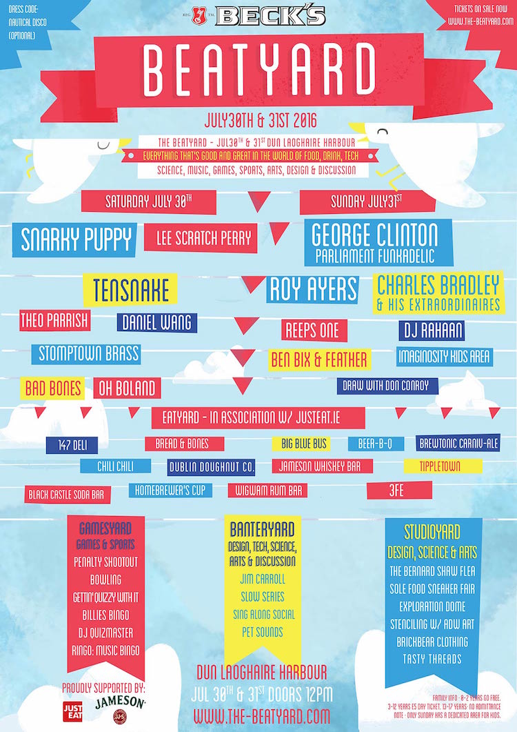 the Beatyard – 30-31 July – Dun Laoghaire Harbour – George Clinton Parliament Funkadelic, Snarky Puppy, Charles Bradley & His Extraordinaires, Roy Ayers, Lee Scratch Perry, Tensnake