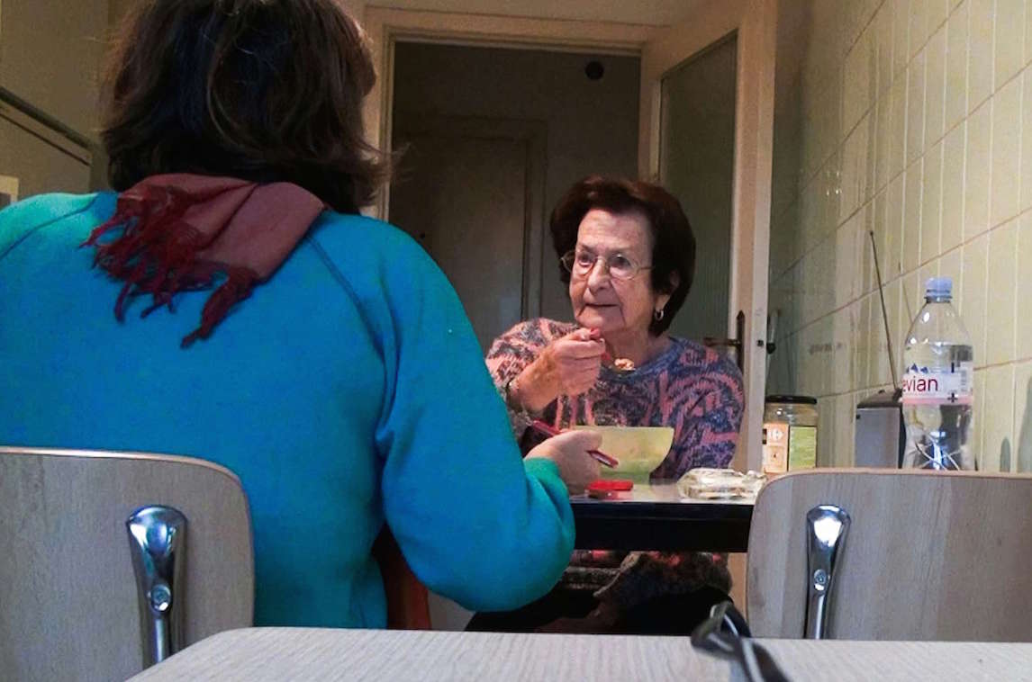 The film begins with dessicated looking leaves clinging to a tree being buffeted by a strong wind in an arid landscape, probably a desert. It is a sequence which lasts what seems an interminable length of time but is apparently about four minutes in duration. During the film there are subsequently long sequences of travelling through a parched landscape. Neither location is ever identified. What is identified is the comfortable, bourgeois Brussels apartment which Akerman’s mother of Polish, Jewish origin occupies with a house keeper as the grim reaper encircles her. She is someone who has faced death in far less comfortable surroundings having been a survivor of Auschwitz. She is an old lady who is entitled to respect as she deals with the daily humiliations of old age.