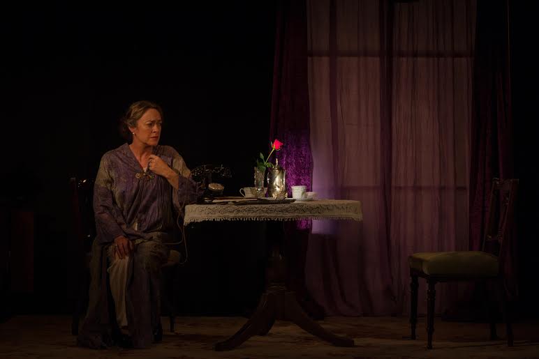 The set consists of a comfortable study with a table and two chairs with an elegant sash window to the rear right. There is a suitably elaborate contraption of a telephone which sits on the table. It is the third character which, when it rings and demands attention, represents the outside world. These two women have to permit its intrusions. It interrupts conversations between Cornelia and Grace which results in “something unspoken” between them. Williams does not specify what the something is.