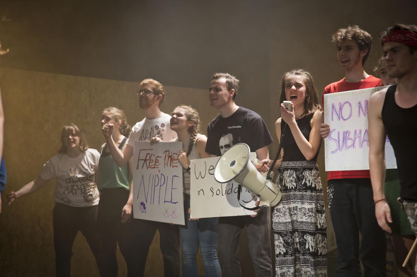 The ideas and words spoken are not taken directly from those on stage. This works well to give both sides of the argument, especially with difficult issues such as abortion. It never serves as a polemic, but rather aims to give a variety of opinions and ideas. The play is well executed and the young cast all show impressive energy and passion. It’s a production that aims to get the audience thinking. It shows that the youth of today are not purely apathetic and apolitical as is often suggested. They have their causes and passions the same as any other, and they’re willing to make a stand!