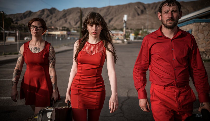 This is a wicked theatrical rock and roll and, as such, it’s hard to take your eyes off the star performer as she careens and spasms across the stage, or delivers a monologue that begins, “So I decided to take a cooking class because I wanted to please him…” However, Rodríguez-López puts in a hero’s shift as he switches nimbly between bass, guitar and keyboards; and Luna Robles is a powerhouse behind the kit, dragging ‘I’m Getting Sick Of You’ to an ecstatic conclusion via a 60’s drum solo led rave–up of rattling snare and thrashing cymbals. As a trio they are air–tight and perform with a swagger that is all their own. This is no more evident than on the funky and cocksure ‘Stab My Back’, which struts up like it’s looking for a fight.