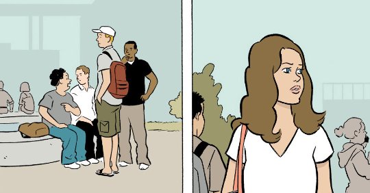 Go Owls is a story about a couple who hook up through AA and their love of a certain baseball team. The sepia toned panels focus on the characters with little interest in the backgrounds. The couple are both quite damaged and their love is far from ideal.