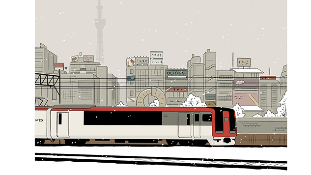 Translated from the Japanese is a brief tale with beautifully worked art; all depictions of cities and buildings. There are no characters on display other than those passing in airports. The story itself is about international travel and a short relationship built up on a flight, that disappears as soon as they land.