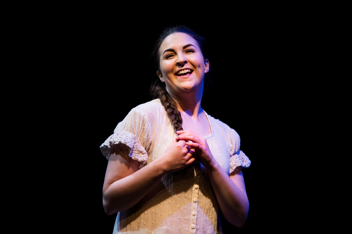 Katie O’Kelly has chosen “The Boarding House”, “Clay” and “Eveline” from Joyce’s collection and adapted them into an hour long piece of theatre. At the start the stage is entirely bare. Then Madi O’Carroll and Katie O’Kelly emerge on stage with a motley collection of suitcases, six in all. Subsequently and with considerable effort, O’Carroll pushes onto the stage a large trunk. The reason why it required such energy to move soon becomes clear, as it contains the third actor, Gordon Quigley! All three are wearing Edwardian underclothes.