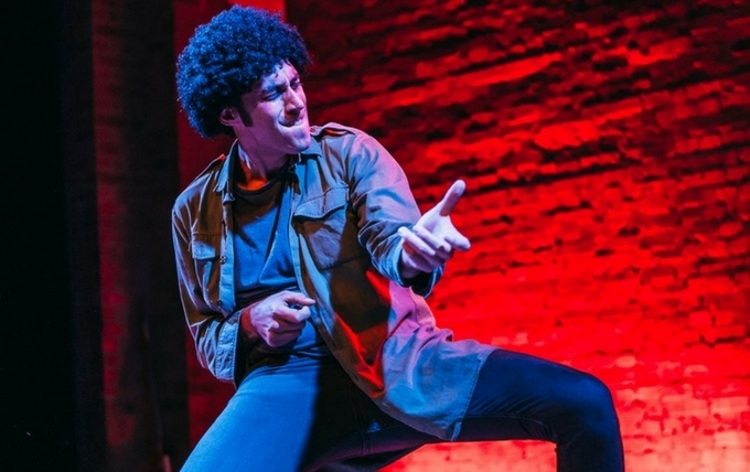 Mountford is as fine an actor as you are likely to see on a Dublin stage this year. He is astonishingly versatile both physically and vocally, changing from child to adolescent to young man, exasperated parent or any one of a dozen other characters – with accents to match. It comes as a surprise to learn that the actor is English as his Irish accents – not just Dublin but West Cork and West of Ireland – are incredibly accurate. Exchanges between an adoring younger boy and his older ultra-cool brother or between various rotating members of Thin Lizzy are done with great economy and humour. Lynott himself comments from his Harry St. pedestal, turning his laconic wit on “gobshites” from around the country who come out of the bar to commune with their hero, and confide their thoughts on the greatness of his music. They are all recognisable types, acutely observed and brilliantly delivered by Mountford.