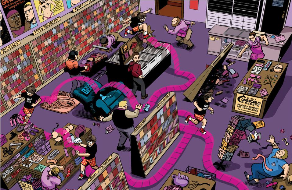 Sex Criminals is not about sex criminals. Yes, surprisingly enough the world of main stream comics baulked at the idea of writing a regular monthly comic about a collection of people on the sex offenders list! While it may have been a more interesting story to tell, I’m not sure the world is ready. Instead it’s about a group of people who can stop time at the moment of their sexual climax. A bizarre concept, but it tells the tale of two such people, and the others they meet along the way. That is obviously not the criminal part of the story though, the element that is against the law is what they do when time has stopped.
