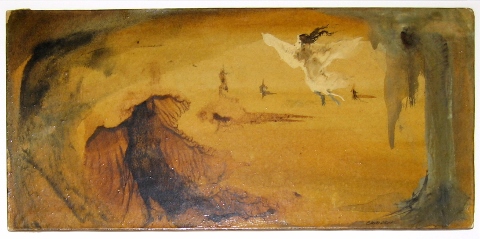 Marjorie Cameron, Untitled (Mystical Landscape with Spirits), undated. Watercolour, ink and varnish on posterboard 36.8 x 47 cm. Courtesy Cameron Parsons Foundation and Nicole Klagsbrun. Photo: Christopher Burke Studio.