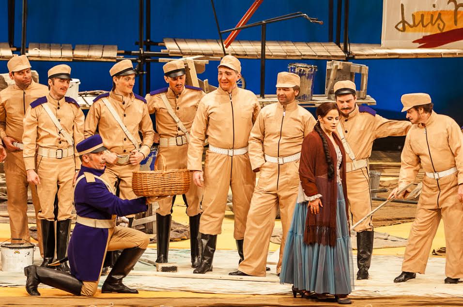 The set design is strongly Picasso-themed: from the gigantic stage curtains made by panels reproducing Picasso’s posters for the Vallauris Exhibition in the ‘50s, to the paintings in final scene taking the whole background. Now, I understand Picasso was Spanish. And I do understand the paintings chosen all have bulls as a subject. But that’s where my understanding of the references ends. The strong visual anachronism of these modern artworks is not functional to the audience’s immersion in the story, which is set in the early nineteenth century, and it’s not that the Georgy Isaakyan’s direction transposes the action in the middle of the twentieth century; so the jarring juxtaposition remains, unexplained, serving no purpose other than that of a decorative distraction.