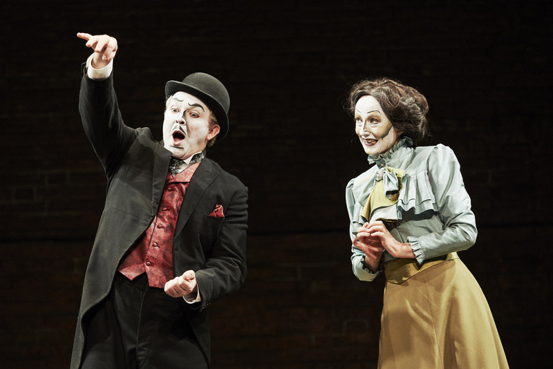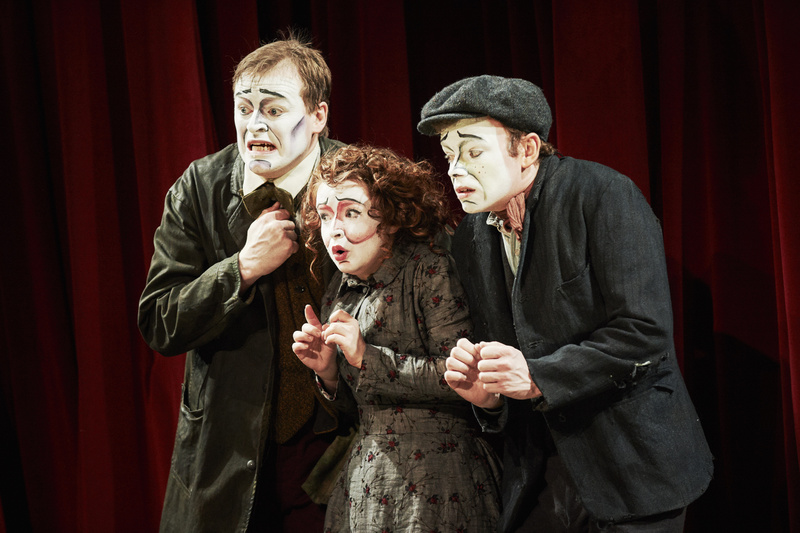 Each cast member plays a variety of roles and they are an impressive ensemble. The stage is simple with the only prop being a bag. The cast use mime and their voices very effectively to evoke locations and objects. Lighting is used cleverly to move between scenes and shadows give the actors space to transform into another character. The pianist in the corner goes almost unnoticed and yet plays a critical role in setting the scene. This production is a bright and stylish evocation of another age.