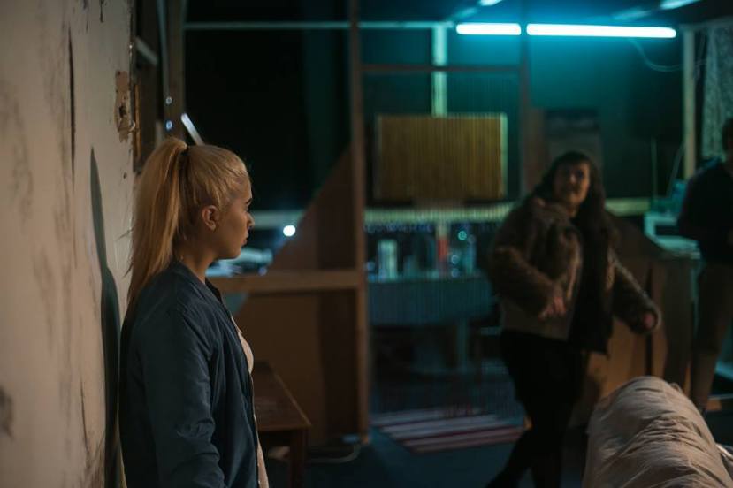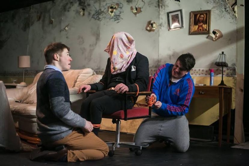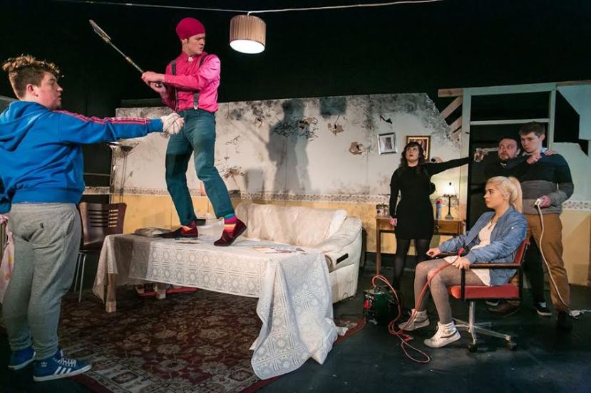 The play is set in the run down flat of one of the drug dealers. There is a sitting room with some typical student style furniture. There’s also a kitchen to one side of the stage with broken down walls allowing us to see what is going on inside. It is a surprisingly big and well worked set for this small production.