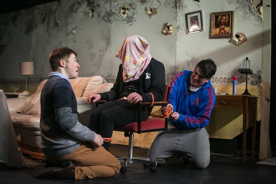 The play starts with two men carrying a third into the sitting room. The unfortunate man appears to be unconscious with a pillowcase over his head. They sit him in a chair and quickly tie his arms and legs, as he comes to life and starts to fight against them. This is where the case of mistaken identity becomes apparent, they have kidnapped the local priest, Father Michael, instead of their intended target! This sets in motion a chaotic series of events, eventually leading to the bloody ending!