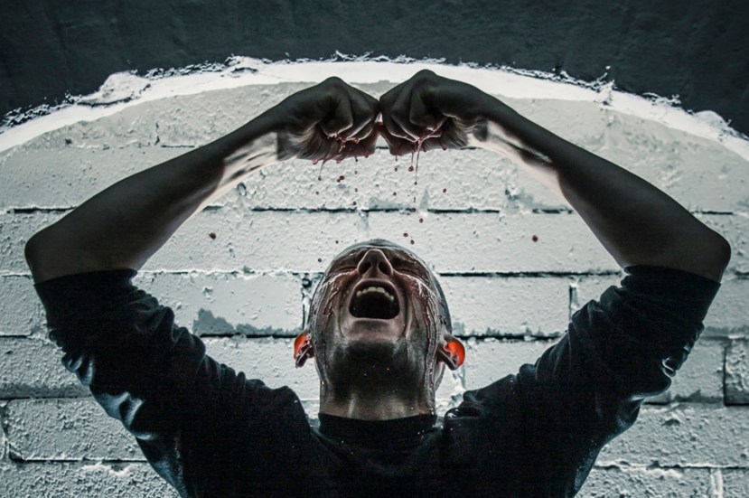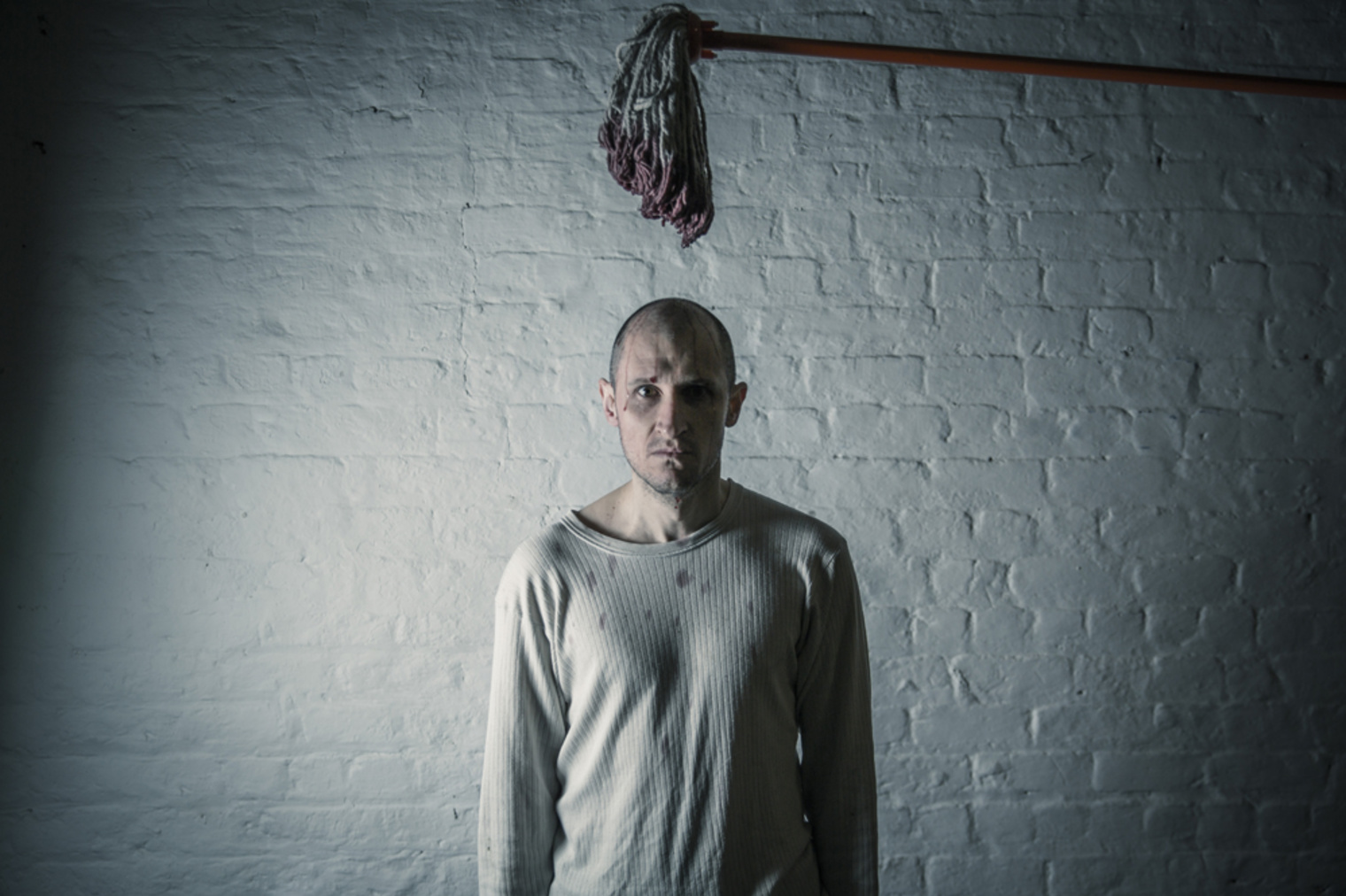 As the actor sidles onto the stage, his face is set in a mask somewhere between vacant and traumatised. The stillness of a statue and the intensity of the expression rivets the audience’s attention and so it continues for the duration of the play. We are in a grotty flat in Bettystown as the silent ‘narrator’ prepares a welcome for the woman who will arrive shortly. The man has been stunned into silence by things she revealed to him and by an action of his own during the relationship that may now be ruptured beyond recovery. Perhaps not; he is hopeful. His attempts to spruce up the place involve balloons and bunting, wiping the rims of used wine glasses, spraying air-freshener on a stagnant mop head etc. He is definitely not your metrosexual ‘new man’.