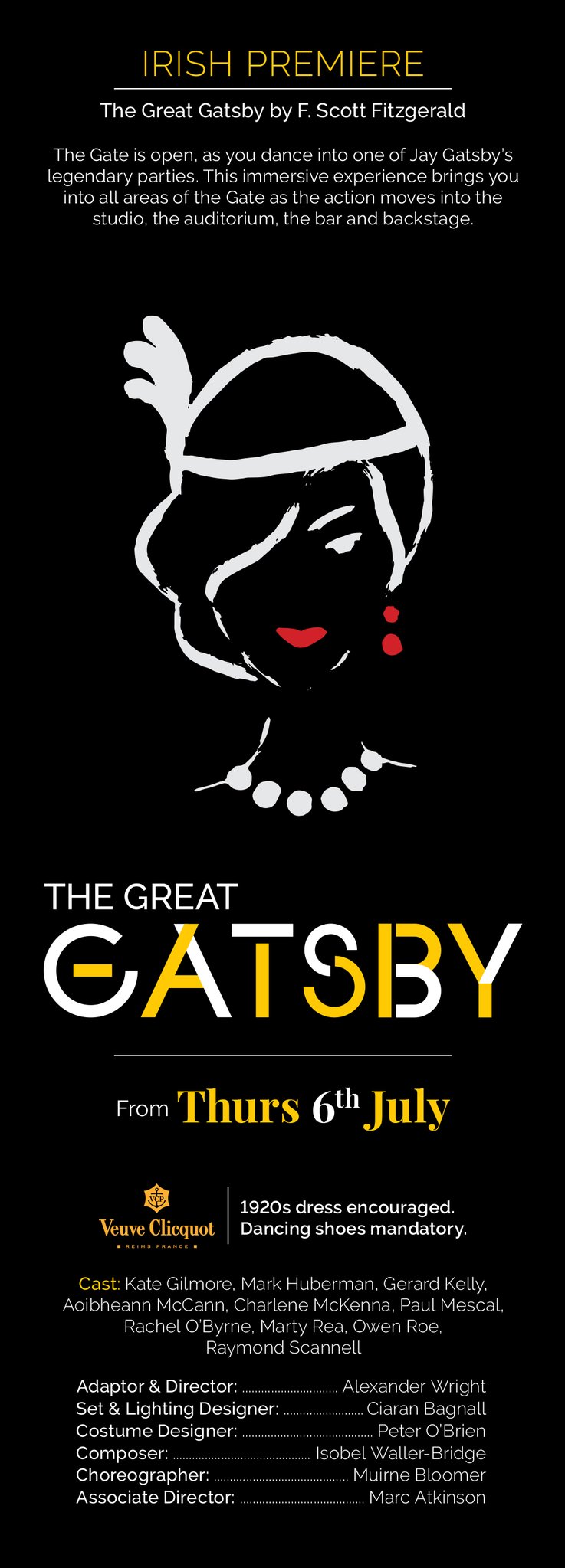 Building on the Gate tradition of ‘page to stage’, this production will give the legendary 1920’s jazz age story a whole new spin offering a portal into Fitzgerald’s novel.