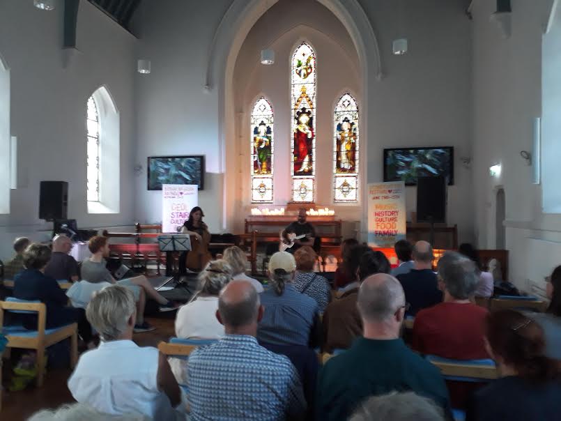John Lambert records under the mane of Chequerboard and doesn’t play live very often so it was a rare treat to witness his performance. He played a set largely drawn from 2013’s excellent The Unfolding album, opening with Dunes, a fine piece that draws you into Lambert’s world. One of the finer guitar players around, he used a loop pedal to create an almost symphonic effect, and was supported ably by Mary Barnecutt on cello. Opening the Gates had echoes of The Edge with its intricate guitar patterns. A church is a perfect setting to hear Lambert’s fine immersive pieces such as Sorrow Bird and the soaring Today Is Beautiful, We Have Things To Do. The understated, almost apologetic Lambert teased us with a new song, a brief solo guitar piece entitled Red Avril which sounded promising. The small but impressed crowd, left in the knowledge they had witnessed something special, with the wonderful music chiming in their ears on their way out.