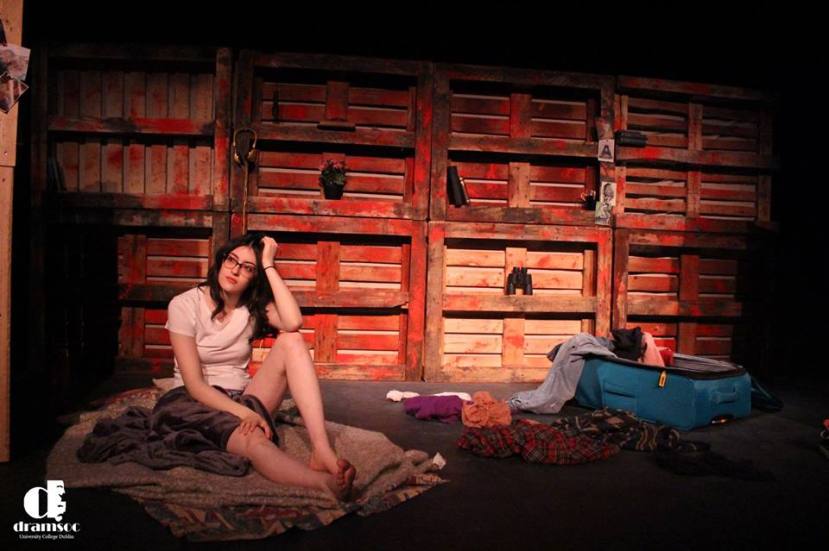 The play is a one woman show with Shannon Ferber acting out elements of Rachel’s life. The set is a number of upturned crates, daubed with red paint. The only other elements that Shannon has on stage with her are a few photos pinned to the walls, a rucksack and the diaries and journals, which she leafs through and reads from.