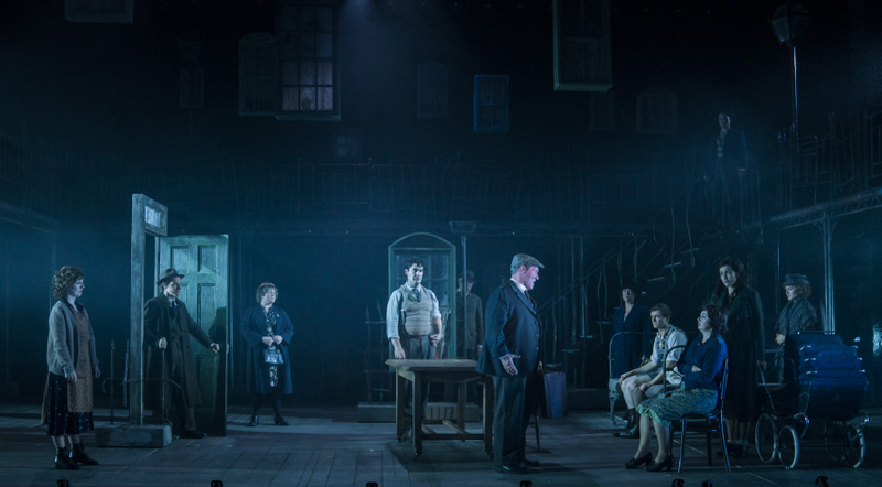 The set design is innovative – wrought iron railings form a three sided balcony that is artfully moved back and forth to give depth to the set, along with a staircase, furniture and doorway that depict the different locations. This brings a huge sense of choreography to the musical and keeps a pace going through it. The only fault possibly with the set design is that it doesn’t really give a sense of just how grim the living conditions were in the Limerick tenements (in a way that the film and the book did) but it’s a minor quibble in the scheme of things.