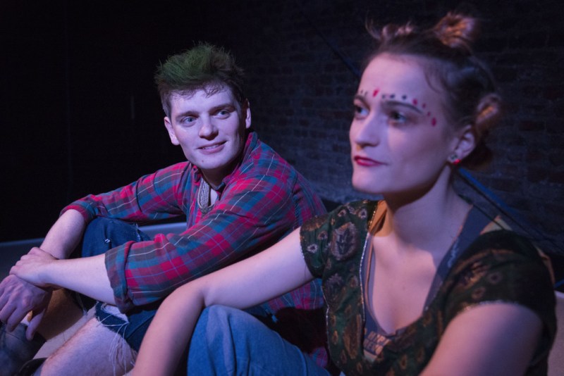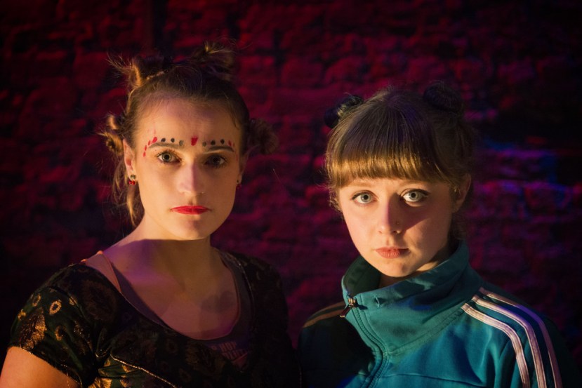 This is a two-hander with Ethan Dillon and Toni O’Rourke playing the parts of Pig and Runt. The play starts with the two actors chasing each other down the ramp which winds around the edge of the Boys’ School in Smock Alley. They are pumped and wild for adventure, dancing and shouting. This sets in motion this intense and lively production. Both actors embrace the parts and show great passion in their respective roles.