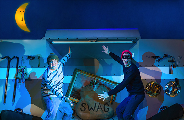 What surprised me the most is that my seven year old, already in Harry-Potter-Land and usually disdaining younger children’s fare, was totally captured by the show. He seemed to enjoy most the humour of the two robbers’ performance and defined the show as ‘very funny’ and ‘brilliant’. Surely all the audience must have thought the same, judging by the eager children’s participation and frequent laughing.