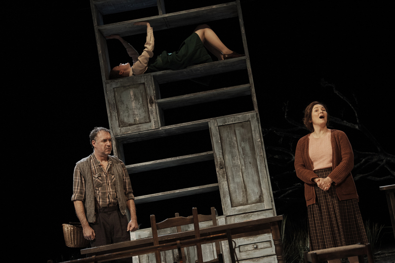 Brian Doherty as Mike Glavin, Grainne Good as Sive and Andrea Irvine as Mena in Druid’s production of Sive by John B Keane at the Gaiety Theatre. Image Ros Kavanagh