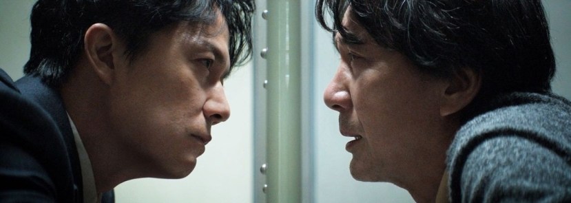 The film opens with a brutal murder in an industrial wasteland: a crooked businessman is battered and burned, his remains leaving a perfect black cross in the earth. Misumi (Koji Yakusho), the apparent murderer has killed twice before, crimes for which he has already served a thirty-year prison sentence. His easy confession looks like closing the case – and ending the film almost before it begins. Yet the state defender, Shigemori (Masharu Fukuyama) has doubts, especially when Misumi changes his story every time they meet and seems cheerfully unbothered about whether or not he will escape the death penalty this time round. Their prison interviews – each confrontation played like a game of philosophical ping-pong – are fascinating. Every word counts, whether spoken or left unsaid. Shot through reflective safety glass, their faces bounce and merge as the lawyer’s desperate suggestions for motive are met with more and more hard-hitting questions about truth, justice and the values of individual responsibility.