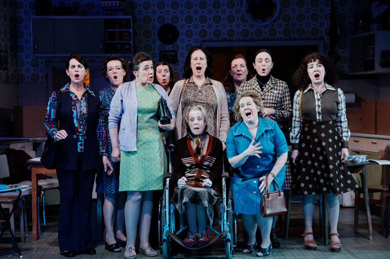 Initially the humour is played quite broad and there is a fear that this is nothing more than a high class sitcom. The group dynamic and banter is enjoyable but never gets to grips with the characters. After the interval the play uses smaller groups and monologues to focus on the individuals. It gives us an insight into their hopes and dreams. There is social and political satire, some of it quite cutting, as we realise that despite their claims to be good catholic women, they all have their vices. It’s an enjoyable and fun production that tells us much about our present by looking at our collective past.