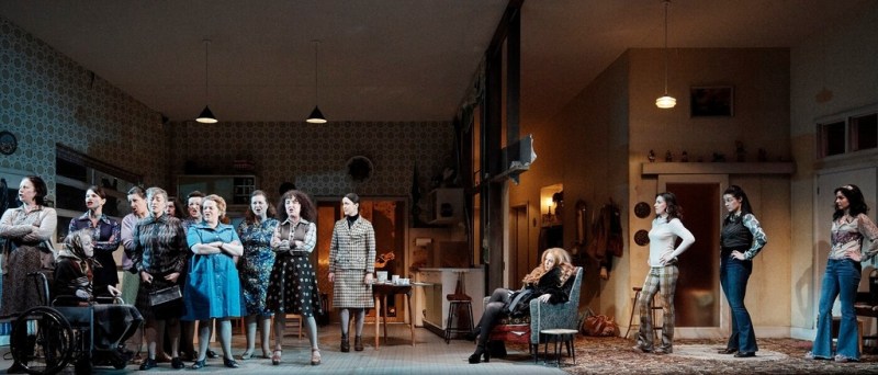 This is a new piece by Deirdre Kinahan which is based on French Canadian playwright Michel Tremblay’s Les Belles-Sœurs, which was first performed in 1965 in Montreal. Kinahan is known for works such as Wild Sky (2016) and Halcyon Days (2012) but this is her first play on the main stage of the Abbey. The play has a large female ensemble cast with fifteen women on stage. The only man listed in the cast is Owen Roe, with the minor role of a voice from off stage. Graham McLaren directs, just to add some gender balance to proceedings!