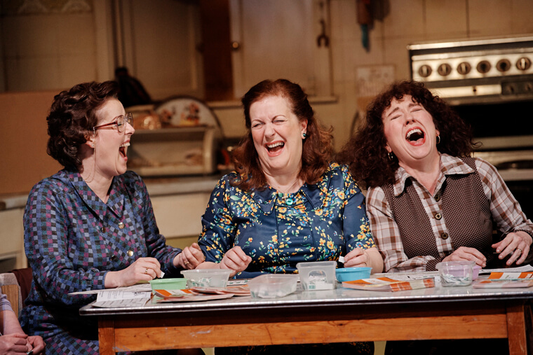 Initially the humour is played quite broad and there is a fear that this is nothing more than a high class sitcom. The group dynamic and banter is enjoyable but never gets to grips with the characters. After the interval the play uses smaller groups and monologues to focus on the individuals. It gives us an insight into their hopes and dreams. There is social and political satire, some of it quite cutting, as we realise that despite their claims to be good catholic women, they all have their vices. It’s an enjoyable and fun production that tells us much about our present by looking at our collective past.
