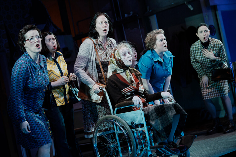 This is a new piece by Deirdre Kinahan which is based on French Canadian playwright Michel Tremblay’s Les Belles-Sœurs, which was first performed in 1965 in Montreal. Kinahan is known for works such as Wild Sky (2016) and Halcyon Days (2012) but this is her first play on the main stage of the Abbey. The play has a large female ensemble cast with fifteen women on stage. The only man listed in the cast is Owen Roe, with the minor role of a voice from off stage. Graham McLaren directs, just to add some gender balance to proceedings!