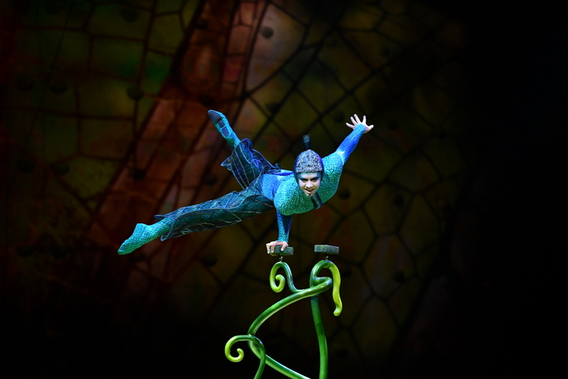OVO, meaning “egg” in Portuguese, is a headlong rush into a colorful ecosystem teeming with life, where insects work, eat, crawl, flutter, play, fight and look for love in a non-stop riot of energy and movement. The cast of OVO is comprised of 50 performing artists from 14 countries specializing in many acrobatic acts.