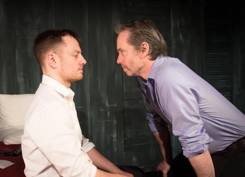 The Dumb Waiter was first performed in 1960 and is a two hander which lasts just about an hour. It has stood the test of time. The action takes place in a dingy subterranean space where Ben (Andrew Murray) and Gus (David Fennelly) lie on separate single beds. They apparently have been sent there by an unidentified third figure who does not appear but under whose direction they operate. Ben, the more dominant of the two, reads a newspaper, and now and again shares a snippet with Gus that has engaged him because of its bizarreness. Gus is initially involved in the task of putting on his shoes and tying his laces, a task that completely engrosses him and takes a great deal of time. Boredom invades as they wait for the third figure to give them orders. There is also in the room a dumb waiter which drops orders for what appears to be a restaurant situate above, but there are no cooking facilities. There is an underlying feeling of aggression and violence which is heightened by the presence of each man’s revolver. This claustrophobic atmosphere is lightened by comic semantic discussions about making tea and whether a football team is playing home or away. The genius of Pinter is alive in these exchanges.