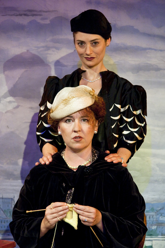 Two New York dames from the upper crust are sitting on the terrace of a restaurant looking out on the eternal city as they reminisce about their time together in their early twenties when they last visited. They both now have daughters who are of a similar ages as they were. Alida Slade (Maria Tecce) is the more striking of the two, magnificently dressed by Peter O’Brien in a black dress with an elegant black hat bedecked with a large diamond brooch and smart hat pin. Grace Ansley (Karen Ardiff) is attired in a more homely fashion and to the surprise of Alida produces her knitting out of her capacious handbag. As they discuss the past, their husbands and their daughters, it becomes clear that there is a very competitive edge to their long standing friendship. Alida is not slow to point out her more successful life but Grace, like a good tortoise with the hare, bides her time.