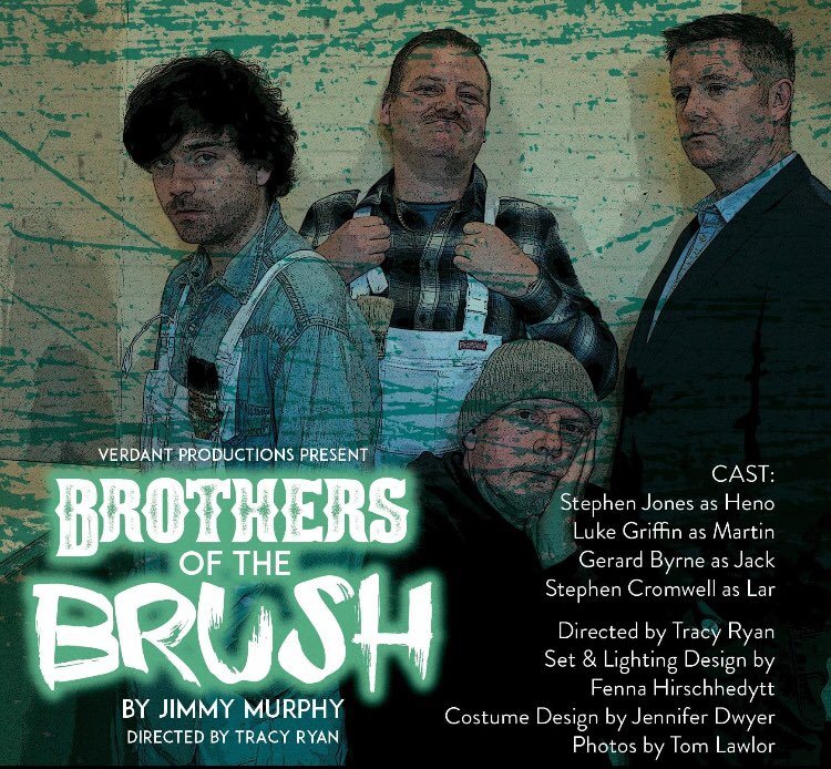 Brothers of the Brush was first performed in the 1993 Dublin Theatre Festival. It is a comic look at three Dublin painters involved in the dodgy renovation of a house. Henno (Stephen Jones) is a painter who believes in the demarcation between the various trades, so he will not do a job of a carpenter. Lar (Stephen Cromwell) is more flexible about what he will and will not do, influenced by the fact that he has moved out of “the flats” with his young family and is the proud possessor of a mortgage. At times he has been perilously close of having his home repossessed. Jack (Gerard Byrne) is considerably older than the other two. He believes in promotion through seniority; therefore when the prospect of a foremanship on a new factory job came into view, he considered that it was his by right. Their boss is Martin (Luke Griffin), whose father started off with Jack as a partner but has, by whatever nefarious means, managed to become the boss of this small painting and decorating outfit. His particular managerial skill is cutting corners. He thinks that Lar would be the best man for the foreman’s job. An anonymous Trade Union’s presence is felt throughout by many references to its rules and practices which are enforced or discarded as it suits the characters.