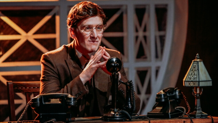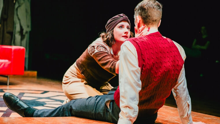One unusual feature of this play is that Brendan Bracken and William Joyce are both played by one man; Ian Toner. Similarly, Charlotte McCurry plays the roles of both wives, Margaret and Popsie, along with a number of other female characters. This decision allows us to see the two men as opposite sides of the same coin, so we can compare and contrast them. They are two deeply flawed characters but despite or because of this, they are both fascinating. Toner creates two entirely different characters on stage. There is even a moment where he transforms from one to the other, changing in posture and presence before your eyes. Charlotte McCurry does very well with the complex character of Margaret but only has a minor role as Bracken’s wife Popsie.