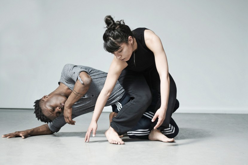 There are two central monologues, both delivered in chairs and spoken in English. When people migrate, they are continually asked ‘why are you here?’ ‘Why don’t you go back?’ Even in small talk. The two monologues break down two simple phrases and they become like Spoken opera arias – a sort of musical and rhythmic babble. They’re like answers to an interview. When an Asylum Seeker in seeking Refugee status, they are interviewed in a chair. They have to demonstrate that they can never return home. The interview is particularly dehumanising and often retraumatises the interviewee. In Cloud Study, the dancers speak English and also speak their mother languages: Arabic and Yoruba. It is a beautiful musical bend of words and quite joyous to listen to.