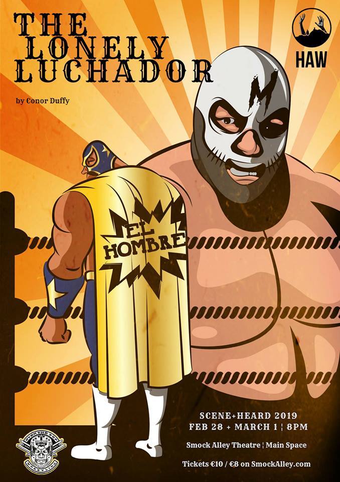 The Lonely Luchador, presented as part of the Scene and Heard theatre festival in Smock Alley, truly brings a breath of fresh air from the usual sit-and-watch theatre that Irish audiences are so used to. In typical wrestling style, a presenter rallying up the crowd and asking for their participation in the show greets the audience: all are welcome to boo and cheer at their pleasure, and posters are handed around to wave during the match.